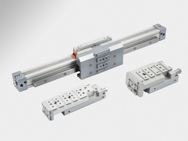 acopladas com cilindros ISO 15552 e 6432, cilindros sem haste, atuadores